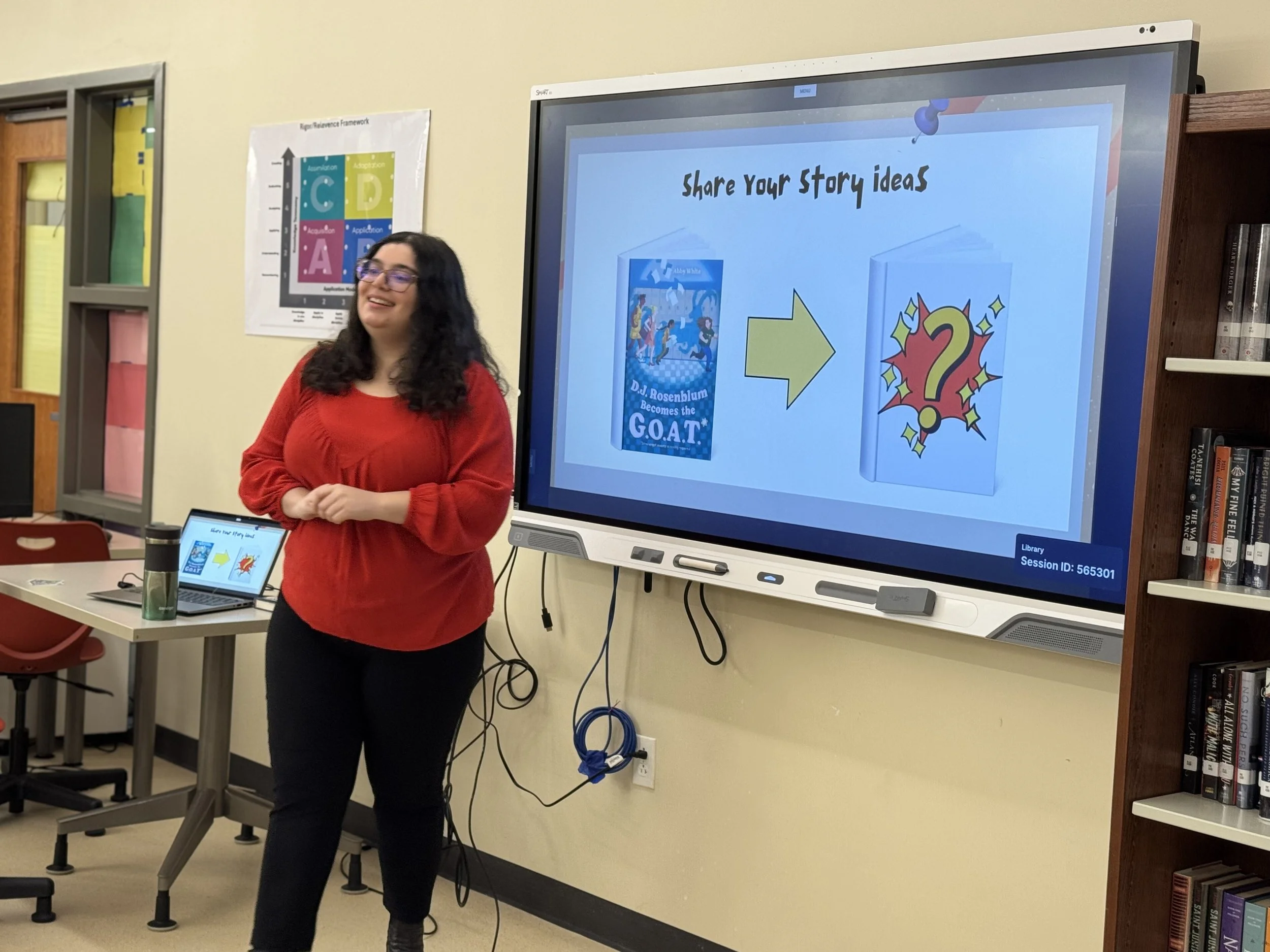 “Abby gave a delightful presentation to our Intensive Study Week group focused on learning about creative writing and book publishing. She was relatable and easily connected with young teens as she generously shared her personal journey as a writer. The behind-the-scenes look at her creative process was particularly fascinating and showed the importance of revision and perseverance. Abby also provided practical craft tips that my students can immediately apply to their own writing. Perhaps most exciting was the creative writing prompt she left us with, which has already sparked a flurry of imaginative ideas for my eager writers. I highly recommend Abby for a school visit —— your young readers and writers will be inspired!”